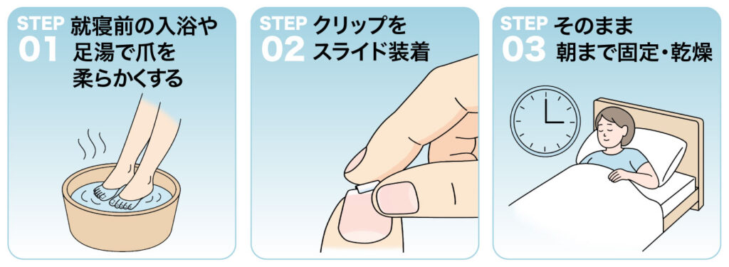 就寝前の入浴後のケアがオススメ。翌朝、クリップを外した瞬間の軽やかな解放感をぜひ体験してください。
